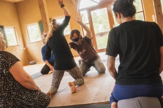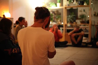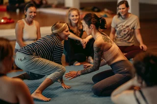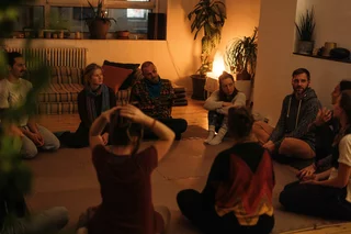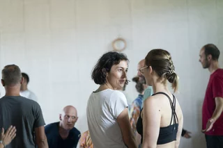 Eine gemeinsame Check-out-Runde bildet den Abschluss und schafft einen Rahmen, das Erlebte zu verarbeiten, zu reflektieren und wieder in sich zu kommen. Es öffnen sich Möglichkeiten für Begegnung, Nähe und Körperkontakt. und ein Moment für Integration und Erdung, die den Übergang zurück in den Alltag sanft begleitet.