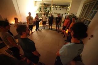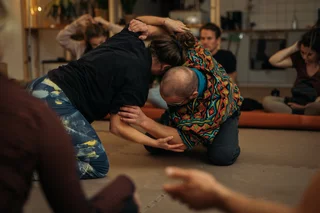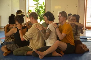 Eine gemeinsame Check-out-Runde bildet den Abschluss und schafft einen Rahmen, das Erlebte zu verarbeiten, zu reflektieren und wieder in sich zu kommen. Es öffnen sich Möglichkeiten für Begegnung, Nähe und Körperkontakt. und ein Moment für Integration und Erdung, die den Übergang zurück in den Alltag sanft begleitet.